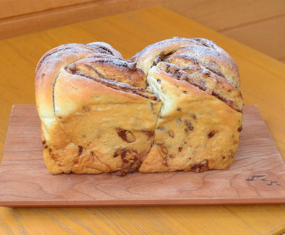 自家製コーヒーペーストにホワイトチョコを加えた優しい甘さのペーストを巻き込んで焼き上げました。